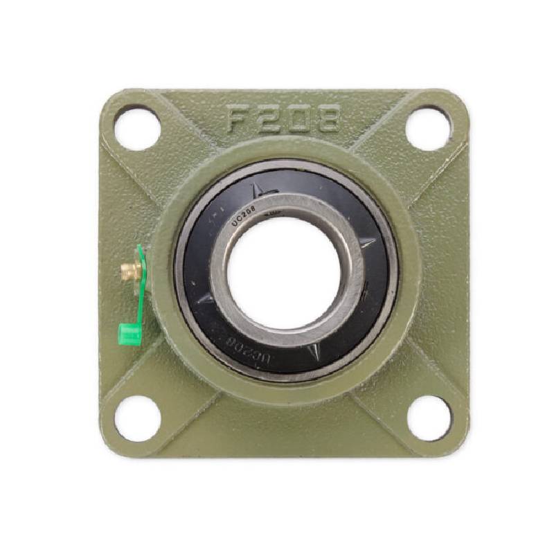 Zespół łożyskowy kompletny model UCF 208 składa się z precyzyjnie wykonanego łożyska oraz masywnej oprawy o kwadratowym kształcie. Taki kształt budowy zapewnia stabilność oraz możliwość łatwego mocowania do powierzchni. Montaż odbywa się za pomocą czterech śrub montażowych M14. Średnica otworu wynosi 40 mm, co umożliwia montaż wałów o tej samej średnicy nominalnej.