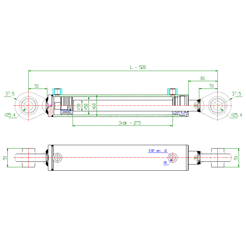 - Średnica tłoczyska: 30 mm