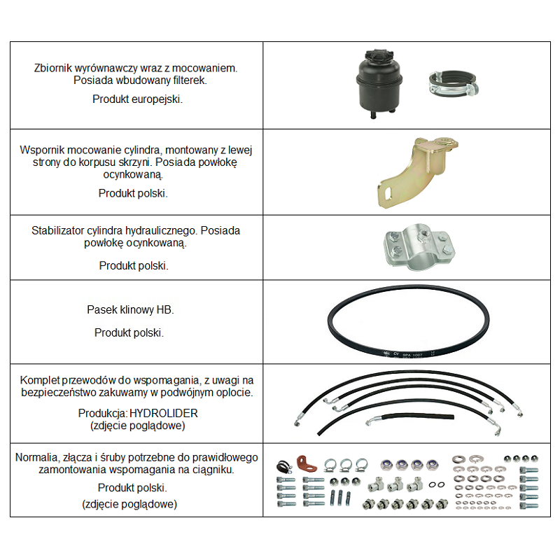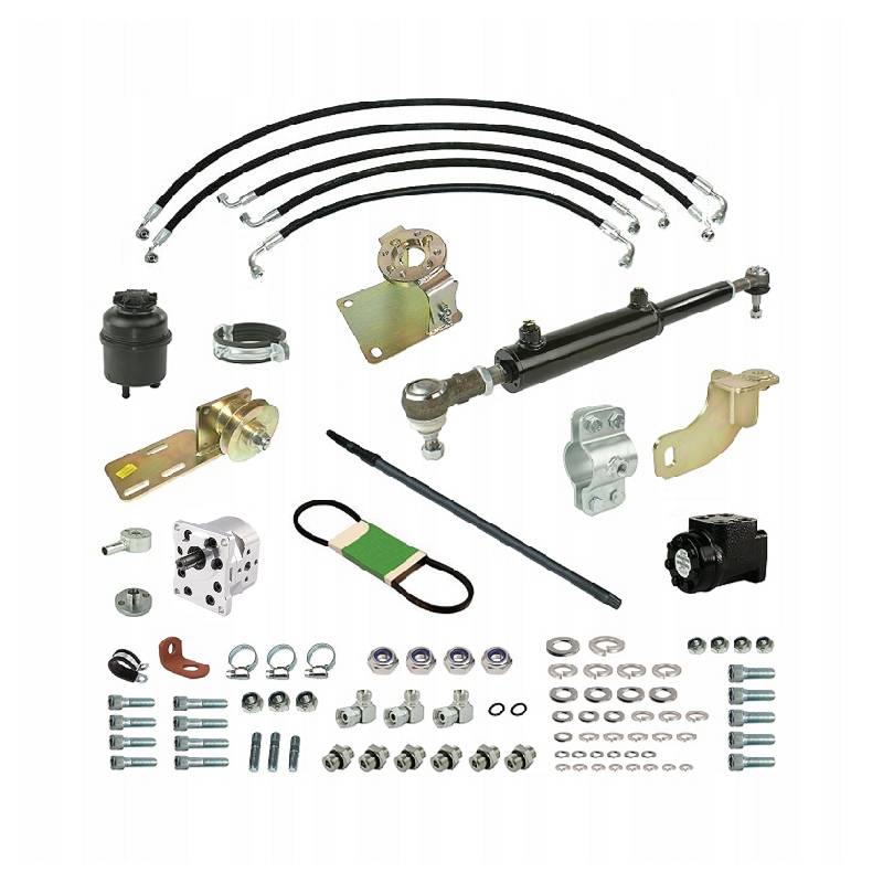 Zestaw wspomagania kierownicy do T-25 to wysokiej jakości, kompletne oraz profesjonalne rozwiązanie, które jest stworzone z myślą o właścicielach ciągników T-25. Pozwala ono na zwiększenie komfortu pracy, precyzji prowadzenia oraz niezawodności sprzętu. Zestaw posiada wszystkie niezbędne elementy do montażu wspomagania. Składa się na nie między innymi: pompa, orbitrol, przewody, czy też osprzęt montażowy. Przemyśla konstrukcja sprawia, że elementy pasują do siebie, a także do każdego rocznika T-25, niezależnie od typu kabiny, czy też wyposażenia.