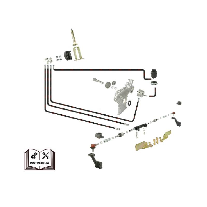 Centralnym elementem układu jest orbitrol Danfoss z zaworem bezpieczeństwa. Zapewnia lekką, płynną pracę kierownicy i długą żywotność całego układu. W komplecie znajduje się również nowa kolumna kierownicza z wspornikiem orbitrola oraz dźwignią gazu. Rozstaw otworów montażowych jest identyczny jak w oryginalnej kolumnie Ursusa, dzięki czemu wymiana przebiega szybko i bezproblemowo.