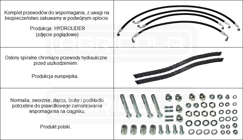 • Typ zestawu: hydrauliczne wspomaganie kierownicy