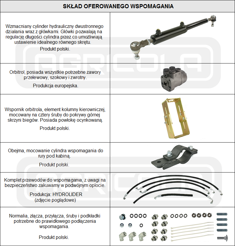 ZAWARTOŚĆ ZESTAWU WSPOMAGANIA KIEROWNICY CIĄGNIKÓW ZETOR